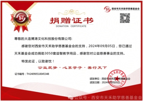大连博涛文化科技股份有限公司向天禾基金会捐赠3050套益智教学用品