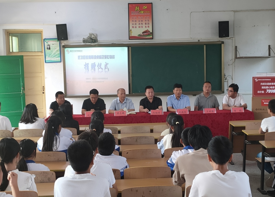 暖暖爱心,点燃希望之光,片片真情,托起明日朝阳。2024年9月23日下午,西安市天禾助学慈善基金会向武功县教育局课桌椅捐赠活动在武功县西塬初级中学举行。天禾助学慈善基金会向西塬中学捐赠课桌椅210套、办公椅30把、音响30套、益智玩具486套,总价值72093元。 武功县教育局副局长刘改军发表了热情洋溢的讲话,他首先对西安市天禾助学慈善基金会的助学善举表示衷心的感谢,他强调我县是教育强县,重视教育,招录了一大批特岗优秀教师,他们在各自工作岗位上做出了突出的成绩,希望借此契机吸引更多优秀人才,进一步提升武功教育教学质量。 武功县西塬初级中学校长梁志鹏致感谢辞,他代表学校全体老师和同学向关心支持学校发展的“西安天禾助学慈善基金会”和参加此次活动的教育局各位领导表示热烈的欢迎和感谢,他表示“奉献爱心,收获希望”,天禾助学基金会爱心捐赠的义举,将福泽千秋,惠泽学子。同时,他希望学生们努力学习,不要辜负爱心人士的期望,以优异成绩回报社会。 西安市天禾助学慈善基金会副理事长尚福稳举牌捐赠,武功县教育局副局长刘改军接受捐赠,尚副理事长深情地表示教育是国家的未来,希望通过这次捐赠,为孩子们的成长贡献一份力量,让他们在更好的环境中学习和生活,他表示还愿意帮助更多有困难,和有重大疾病的师生。 此次爱心捐赠活动,不仅为西塬中学带来了实际的帮助,更在学生们的心中种下了爱与感恩的种子。相信在社会各界的关心与支持下,西塬中学的学子们将茁壮成长,为实现自己的梦想而努力拼搏,为国家的繁荣富强贡献自己的力量。