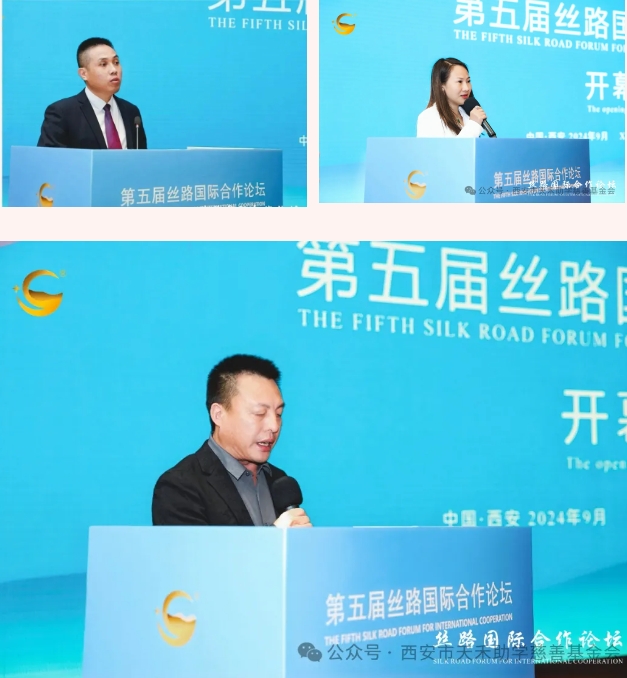 9月21日,由北京亚太经济合作促进会、乌兹别克斯坦驻华大使馆、乌拉圭驻华大使馆、陕西省服务贸易协会、西安市服务贸易协会、陕西省西咸新区服务贸易协会联合主办,陕西梦圆丝路品牌管理有限公司承办,陕西省欧美同学会、依巴特、酉道酱酒、极氪、大秦之水、太合钻探、心特软食品、云通物流等单位协办的第五届丝路国际合作论坛在西安开幕,西安市天禾慈善基金会经丝路国际合作论坛组委会邀请参与了此次盛会。 政协陕西省第十二届委员会副主席、台盟中央参事王二虎宣布论坛开幕 作为此次唯一受邀关注教育慈善事业的基金会,天禾慈善基金会向泰国及一带一路沿线国家共捐赠价值5500万元人民币的“云图书馆”。此次捐赠旨在为丝路国家的学生提供丰富多样的电子图书及在线课程资源,增加互动交流共享平台。在互联网高速运行的今天双方以科技为桥,打破地域限制,共筑知识无国界的梦想。 尚福稳在发言中说,基金会始终秉持“心系学子,善行天下”的初心,致力于改善偏远地区教育资源不均衡现状,“云图书馆”项目的开展将有效促进中国与丝绸之路沿线国家之间的交流与理解,以此为出发点,未来期待与更多国家建立联系,共同探索教育公益的新模式、新路径,为全球教育事业繁荣发展献计献策。 活动现场 此次论坛,为丝路沿线国家和地区之间开放合作营造了一个良好的交流平台,拓宽了国际市场和机遇。相信在“一带一路”的宏伟蓝图下,基金会与丝路国家企业一道将共同书写教育合作新篇章,也会为实现全球教育公平与可持续发展而不懈努力。 论坛以“开放·合作·共赢”为主题,全面贯彻了习近平主席关于共建“一带一路”系列重要讲话精神,积极落实高质量共建“一带一路”八项行动、中国—中亚西安峰会、中非合作论坛等成果。 政协陕西省第十二届委员会副主席、台盟中央参事王二虎出席并宣布开幕,撒马尔罕市副市长拉贾博夫,中共陕西省委原副秘书长冯在才,中共陕西省委政研室原副主任、省深改办原专职主任、陕西省决咨委农业组副组长王东,陕西省人大常委会民族宗教侨务外事工作委员会原主任、陕西省旅游局原党组书记、局长董宪民,中共陕西省委台办原副主任、一级巡视员何锐,陕西省政协机关原一级巡视员、省三秦文化研究会秘书长刘昌军,陕西省欧美同学会秘书长胡久炎,北京亚太经济合作促进会常务副秘书长、丝路国际合作论坛秘书长李培峰,塞舌尔政府前驻华代表廖俊侨,乍得华人华侨联合会名誉会长马立招,泰中友好发展基金会主席张英英,中巴国际商业联盟主席王永鑫,中国巴基斯坦医疗协会主席沙巴兹。以及来自印度、巴基斯坦、乌兹别克斯坦、日本、泰国、塞舌尔、乍得、老挝、美国等企业、高等院校、商协会、新闻媒体代表共150余人出席。