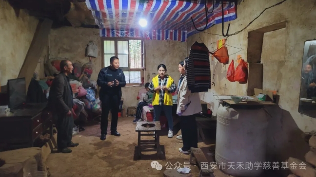 10月11日,天禾慈善基金会与爱心单位共赴商洛市镇安县开展物资捐助及家庭走访活动。 天禾慈善基金会物资部部长何蕾,公益事业部张宁与爱心单位代表杨佳荣先生首先来到镇安第二小学参加物资捐助仪式。镇安县教育和体育局督导室总督学庞赟,镇安县第二小学校长齐昌军,镇安县大坪镇龙湾小学校长李全华,镇安县永乐街道庙坡小学校长王和青,镇安县大坪镇中心小学校长张国军出席。 天禾慈善基金会物资部部长何蕾在发言中也表示,义务教育是国民教育的基础,促进县域义务教育优质均衡发展对提高全民教育水平、实现教育公平具有重要意义。基金会将持续不断关注镇安地区教育事业发展,与爱心单位和爱心人士一道共同为孩子们架起知识的桥梁。希望同学们充分用好这些教具,寓教于乐,学有所获。 镇安县第二小学、大坪镇龙湾小学、永乐街道庙坡小学、大坪镇中心小学校长上台接受物资捐助 现场,大坪镇龙湾小学为我会颁发了荣誉锦旗。 永乐街道庙坡小学困难家庭生活现状