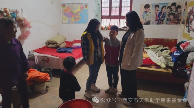 捐助结束,镇安第二小学和永乐街道庙坡小学校长带领基金会工作人员与爱心人士走访了6位困难学生家庭,进一步了解了学生生活现状,为下一步资助提前做好记录。