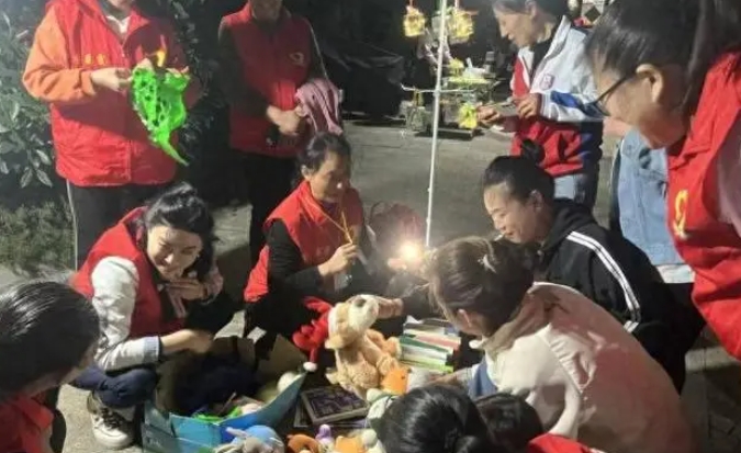 2024年10月12日晚,在栖霞市大成门小区门前门前小广场上,栖霞市爱的传递助学协会开展了幸福集市进小区活动,居民在幸福集市体验人间烟火,领略平凡幸福生活,感受爱的传递志愿者传递出的浓浓爱意。
