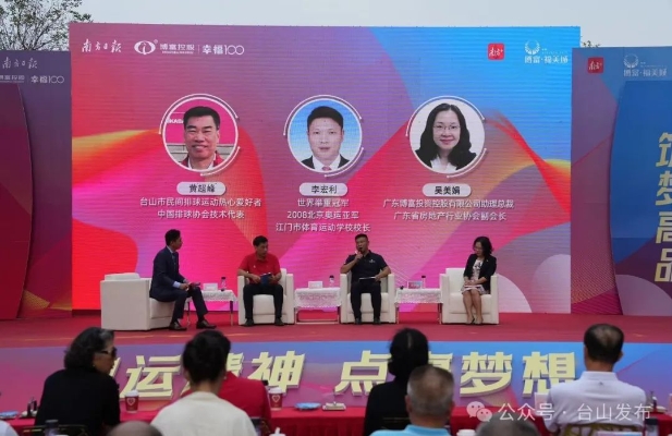 活动邀请世界举重冠军、2008北京奥运亚军、江门市体育运动学校校长李宏利,台山市民间排球运动热心爱好者、中国排球协会技术代表黄超峰,博富控股助理总裁、广东省房协副会长吴美娟上台分享交流。