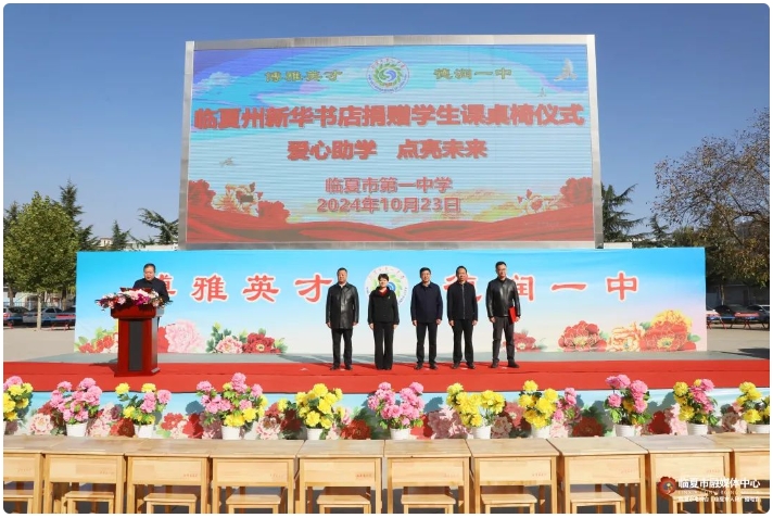 汇聚爱心力量,共促教育振兴。10月23日,临夏州新华书店捐赠学生课桌椅仪式在临夏市第一中学举行。甘肃省新华书店党委委员、副总经理、工会主席宋艳丽,临夏州新华书店党总支书记、总经理陆文,市委副书记、市长刘尚增出席捐赠仪式。