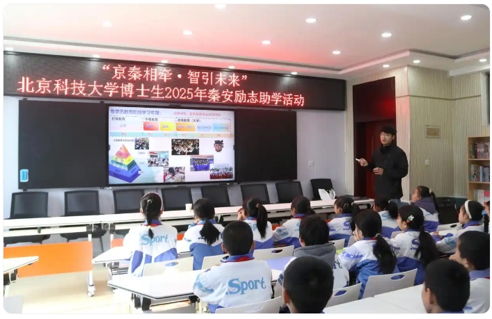 据介绍,“京秦相牵·智引未来”北京科技大学博士生秦安励志助学活动已连续举办两年。博士们通过分享个人求学经历、学习方法、科普知识、大学学习生活等内容,为当地学生打开了视野,启迪了智慧,树立了学习榜样,这也是北京科技大学深化定点帮扶工作实效,积极发挥教育科技人才优势,助力秦安县乡村教育振兴走深走实的又一项重要举措。