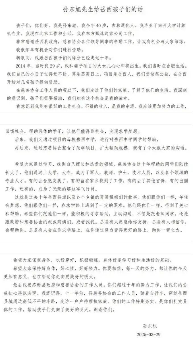 助学金发放仪式上,孙东旭、项目夫妇委托代表传达了对岳西学子的牵挂。据悉,孙东旭、项目夫妇在岳西县持续助学12年,累计资助学生60多人,助学金额达百万元。