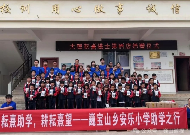 4月8日上午,大理颐和耘熹进士第酒店为巍宝山乡安乐小学捐赠物资并举行捐赠仪式。