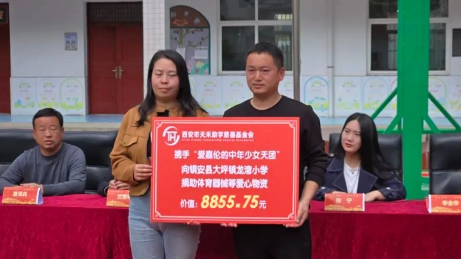 2025年4月9日,天禾助学基金会携手“爱嘉伦的中年少女天团”走进陕西省镇安县大坪镇龙湾小学,开展爱心物资捐赠活动,此次活动为学校捐赠了乒乓球桌、篮球架、书包、文具、卫衣等价值8255.75元的爱心物资,并深入探访多名困难学生家庭,用实际行动传递温暖,助力乡村教育发展。 爱心捐助 助力成长 下午两点,捐赠仪式在龙湾小学操场举行。天禾助学基金会工作人员、校方领导及全体师生共同参与。此次捐赠的物资包括乒乓球桌、乒乓球拍、篮球架、篮球、儿童书包、彩铅、铅笔、作业本、卫衣等,旨在丰富学生们的课余生活,改善学习条件。捐赠仪式上,龙湾小学校长、天禾助学基金会代表及学生代表分别发言,表达了对爱心人士的感谢,并表示这批物资将极大改善学校的体育教学条件,丰富孩子们的课余生活,鼓励学生们珍惜机会,努力学习,回报社会。 天禾助学基金会负责人表示:“此次活动,我们要特别感谢“爱嘉伦的中年少女天团”的爱心之举。她们因对偶像任嘉伦的热爱凝聚在一起,却将这份爱化作实际行动,传递给了远方山区的孩子们。正是因为有了像她们这样心怀大爱的爱心团体,我们的公益之路才越走越宽广,越来越多的孩子才能受益。这份跨越距离的温暖,必将在孩子们心中种下爱的种子,激励他们努力学习,积极向上”。 捐赠仪式后,基金会工作人员与学生们一起开展了互动游戏,打篮球、乒乓球,欢声笑语充满校园。孩子们在运动中展现活力,在互动中收获快乐。一位参与活动的学生说:“今天特别开心,有了新的乒乓球桌,以后可以和同学们一起打球了! 走访困难家庭 精准帮扶 当天下午,基金会工作人员在校长带领下,走访了多名困难学生家庭,深入了解他们的生活状况,并送上了书包、衣服等学习生活物资,