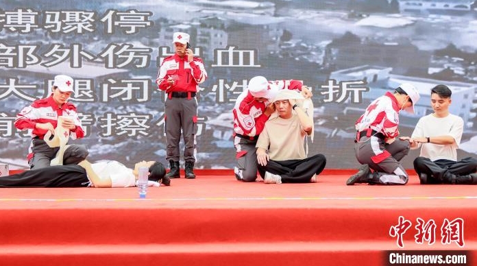8日,“矢志人道携手同行”——纪念第78个“世界红十字日”主题宣传活动在福建福州举行。图为应急救援救护情景短剧表演。张若冰 摄