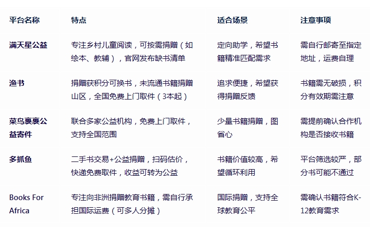 根据您的需求(如便捷性、反馈、定向助学等),选择最匹配的平台,让每一本书都找到它的新读者!