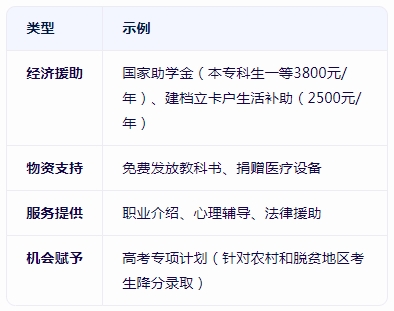 多元形式:包括现金补助、物资捐赠、技能培训、政策倾斜等。