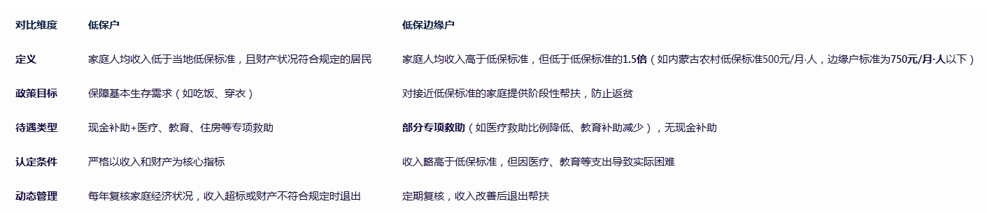 低保边缘户是低保政策的延伸,为接近低保标准的家庭提供阶段性帮扶,但无现金补助。