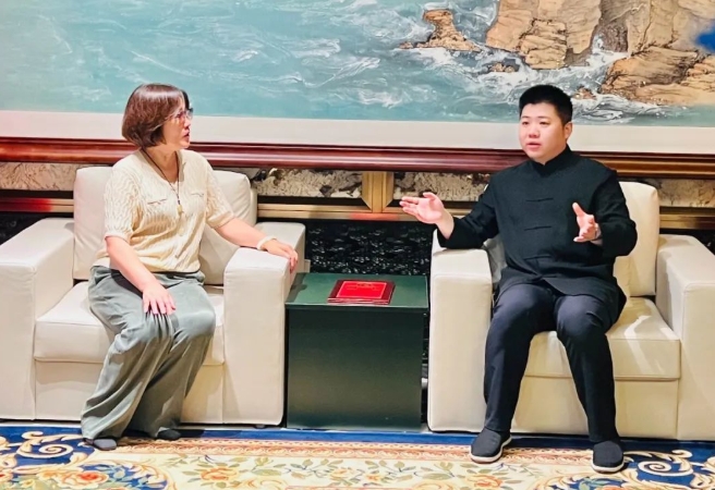 理事长介绍了基金会的发展历程、主要业务及未来规划。基金会长期关注青少年成长与科技创新,致力于整合社会资源,为青少年提供优质的发展平台。此次拜访廖彬宇先生,旨在借助其深厚的文化底蕴和广泛影响力,推动文化与科技融合,助力青少年全面发展。