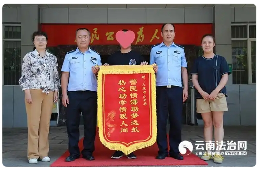 热心助学情暖人间”字样的锦旗送到大理市公安局,感谢市公安局全体民警、职工、辅警对他的关爱和帮助。