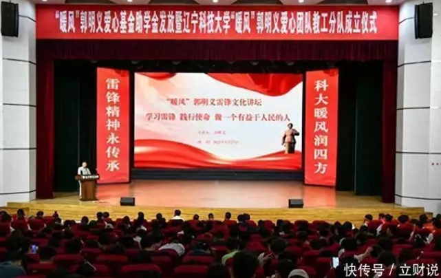 2025年5月27日,辽宁科技大学举行第五次"暖风"郭明义爱心基金助学金发放暨"暖风"郭明义爱心团队教工分队成立仪式。全国总工会兼职副主席、辽科大"暖风"爱心团队校外指导教师郭明义亲临现场,校党委副书记孙晓华等领导及师生代表1000余人参加活动。