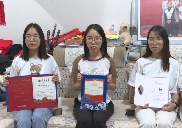 近日,玉溪市江川区宁海街道朱家庄社区白衣寨小组的一个家庭传来消息:家中三胞胎姐妹陈姊娟、陈姊娜、陈姊妍分别以文科623、603、632的高分,收到了天津大学、西北大学、厦门大学的录取通知书。三人以优异成绩携手迈入重点大学,成为街坊邻里热议的“励志榜样”。
