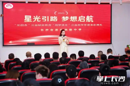 11日,由湖南沁园春教育科技集团主办的“星光引路·梦想启航”——“沁园春”公益赋能教育“圆梦清北”公益助学年度表彰活动在长沙市思沁高级中学举行,对一批“金榜题名”的学生进行了表彰,并宣布设立百万元专项公益助学金,用于资助该校2025年毕业的11名优秀学生完成本科至博士学业。