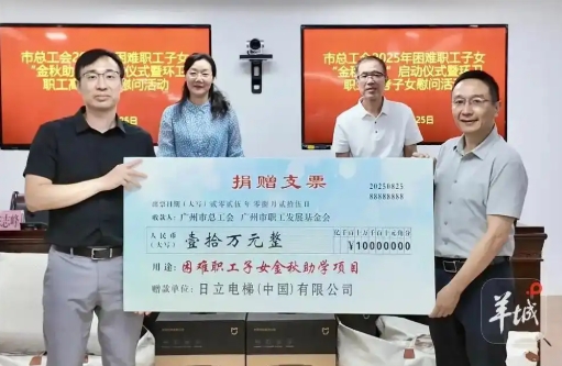爱心企业日立电梯(中国)有限公司多年来一直鼎力支持“金秋助学”活动。截至目前,日立电梯公司已向广州市工会困难职工家庭捐赠助学款和助学物资价值超过290万元。