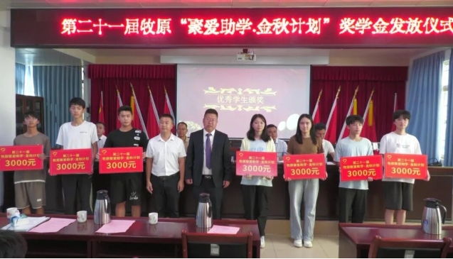 仪式上,新江镇主要负责同志及翁源牧原公司代表为7名受助学生颁发助学金。