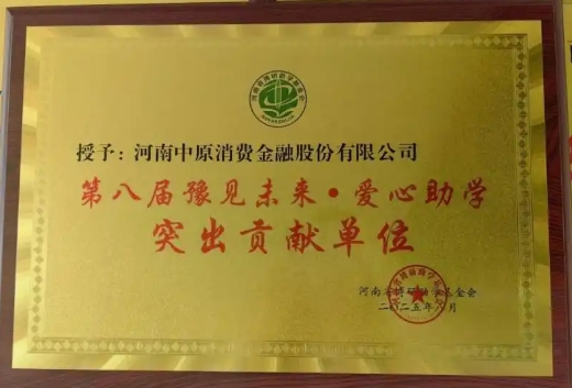 中原消费金融荣获第八届“豫见未来·爱心助学”突出贡献单位