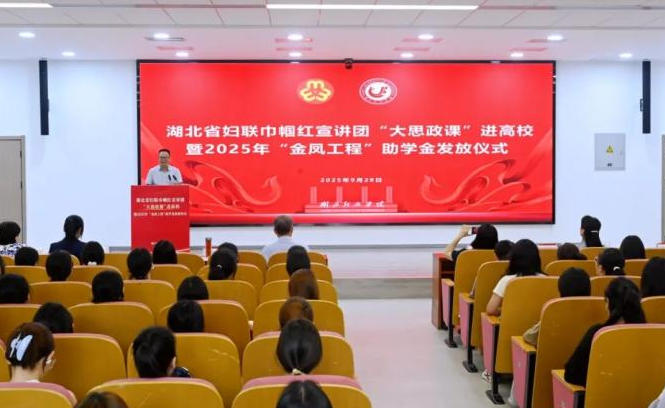 9月28日,湖北省妇联巾帼红宣讲团“大思政课”进高校暨2025年“金凤工程”助学金发放仪式在湖北经济学院举办。
