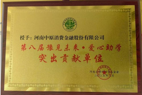 践行社会责任 中原消费金融获“豫见未来・爱心助学”突出贡献单位