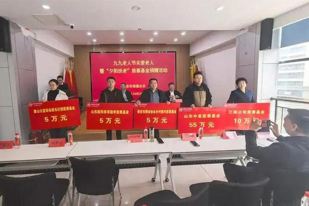 在九九老人节即将到来之际,10月24日,泰安市慈善总会开展九九老人节关爱老人暨“夕阳扶老”慈善基金捐赠活动。众多爱心企业家及各界代表齐聚一堂,共襄善举,以实际行动为全市老年群体送上节日的关怀与温暖。