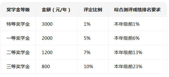 奖学金等级金额(元/年)评定比例综合测评成绩排名要求