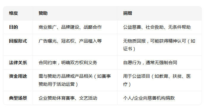 二、赞助与捐赠的核心区别