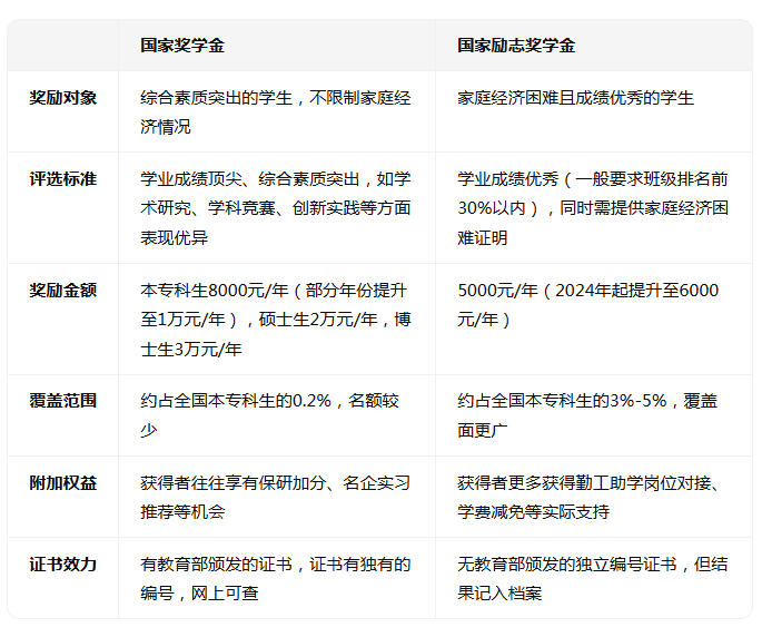 一、国家奖学金与国家励志奖学金的对比