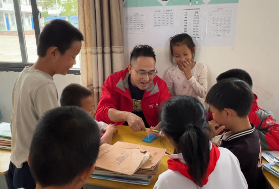值得一体的是,本次支教行动在课程设计上首次加入安全教育课程。一堂课是面向高年级和全校老师讲授的心肺复苏、异物梗阻急救、人工呼吸等应急救护课程,志愿者老师现场演示AED自动除颤仪操作流程并让老师学生一一演练,在提升应急能力的同时,也把“4分钟黄金救援圈”理念覆盖到乡村。另外,针对近年来金融诈骗频发的情况,志愿者老师通过视频案例讲解和互动游戏,帮助孩子们了解常见的金融诈骗手段(如电信诈骗、网络游戏诈骗等),提升他们的金融安全意识,学会识别和防范诈骗行为。