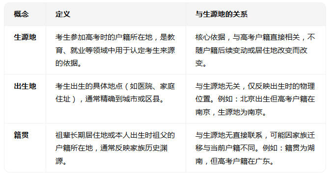 纠正:出生地仅反映出生位置,与高考户籍无关。例如:在广州出生但高考户籍在深圳,生源地为深圳。