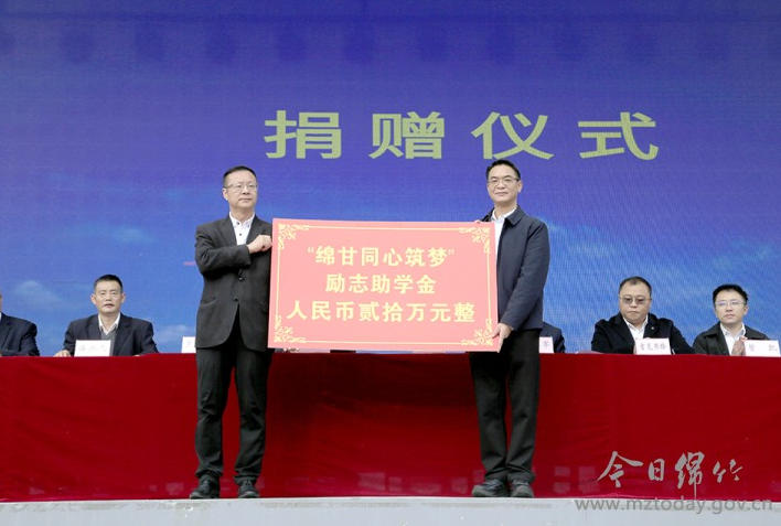 捐赠仪式上,绵竹向甘洛捐赠了“绵甘同心筑梦”励志助学金20万元。房义勇、罗继军等绵、甘两地领导和嘉宾为10名受助学生代表发放了助学金。