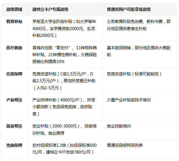 三、建档立卡户的核心政策优势(对比普通贫困户)