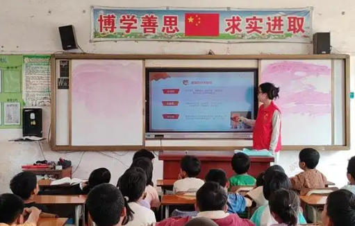 助学帮扶既送物资更传关怀。在爱国主义教育环节,志愿者不讲空洞道理,而是以鲜活红色小故事,让孩子们懂得幸福生活来之不易;手工课上,大家共同拼贴五星红旗,孩子们望着亲手制作的国旗,脸上洋溢着自豪;合唱国歌时,党员与师生歌声嘹亮,爱国种子悄然在心中扎根。物质帮扶不打折扣,党支部为困难学生装满书包、文具、教辅资料的“爱心礼包”,切实减轻就学压力,传递党组织与企业的温暖。安全教育同步开展,活动现场组织消防安全演练,通过“理论讲解+示范操作+互动体验”方式,指导学生如何正确使用灭火器、掌握火场逃生技巧,让孩子们提升自我保护能力,筑牢校园安全防线。