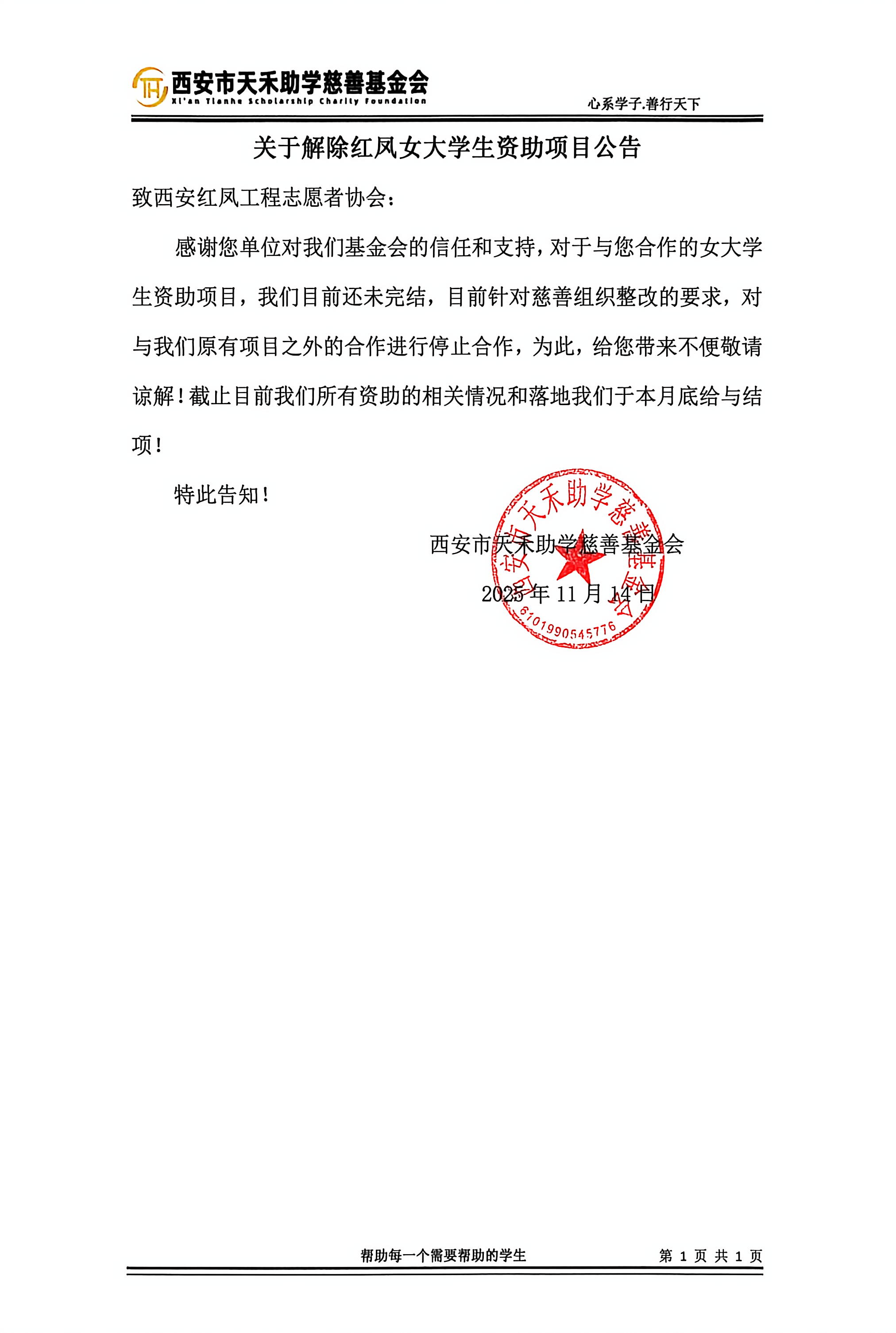 西安市天禾助学慈善基金会关于解除云图书馆项目的公告