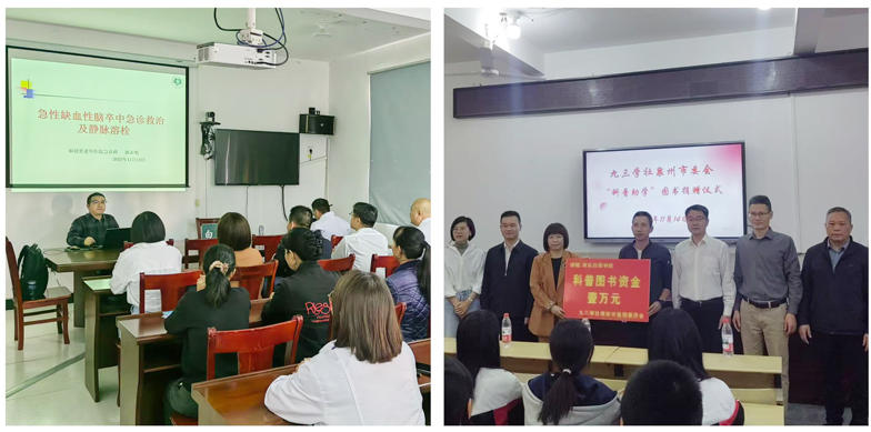 在白莲镇卫生院,郭永明为卫生院医卫人员和乡村医生作题为《急性缺血性脑卒中应急处置与静脉溶栓》培训讲座,解答指导脑卒中等老年常见突发疾病救治思路,帮助基层医卫工作者提升医疗业务水平。在白莲学校举办“九三学社专家同心科普行”活动,赖兵莲代表社泉州南安基层委向学校捐赠一万元,用于采购科普书籍,丰富孩子们课外阅读内容。魏青为学校初一师生作《我的网络安全探险日记-做聪明的数字小公民》专题科普讲座,提高孩子网络安全意识,养成良好的上网习惯,受到学校师生的热烈欢迎。