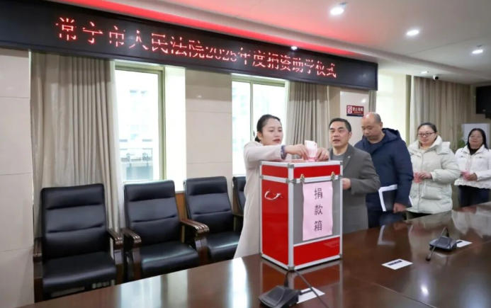 动员讲话后,捐款仪式正式开始。班子成员带头捐款,各部门负责人依次走向捐款箱,郑重投入饱含爱心的善款。现场氛围庄重而热烈,每一笔捐款都承载着法院干警对莘莘学子的深切关怀,彰显着“司法为民、心系群众”的深厚情怀。会后,其他干警也积极响应、踊跃捐款。后续,将由院政治部统筹对接常宁教育部门,确保善款专款专用、落到实处。