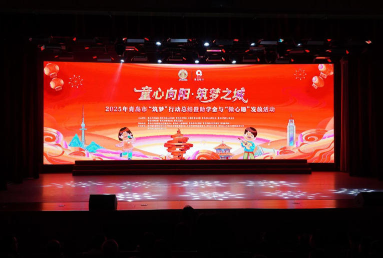 筑梦之城”2025年青岛市“筑梦”行动总结暨助学金与“微心愿”发放活动在青岛市冰山之角大剧院温情落幕。