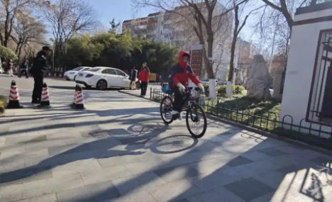 12月26日临近中午11点半,潍坊城区张面河景区新华甲巷至新华路段南侧出入口处,工作人员提前到位,移开挡车反光锥,一条安静的临河小道随之敞开。这是一条专为骑行学子开辟的“助学快线”。