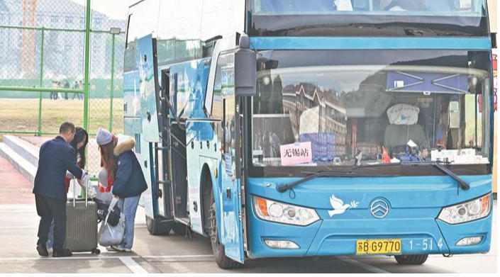 1月14日,是太湖学院学生寒假集中返乡首日。中午,3辆校园大巴已早早等候在接驳点。“在校内即可乘车,满员后立即出发,途中不设停靠站点,直达火车站。”来自湖南衡阳的阳同学高兴地说,“原本从学院到无锡东站,我要先坐公交再转地铁,全程至少一个多小时,有时拿捏不好公交车到站的时间,还会有延误高铁的风险。现在有了校园直通车,方便多了!”