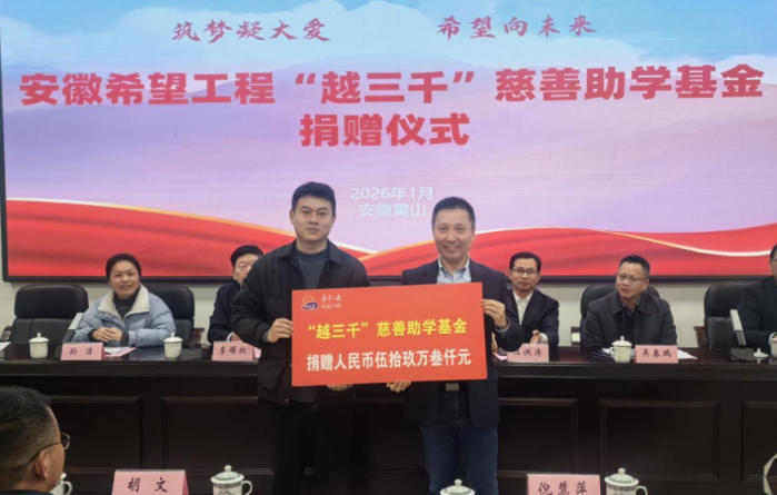 本次“越三千”慈善助学基金共捐赠59.3万元,用于资助黄山市548名、宣城市绩溪县45名,总计593名家庭经济困难的高中生,每位学生获得1000元助学金。