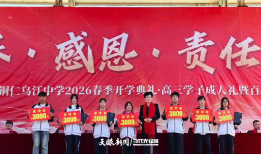 3月11日,铜仁乌江中学2026年春季开学典礼、高三成人礼暨高考百日誓师大会在学校足球场举行。活动融合开学启新、成人立志、高考誓师、暖心助学四大环节,为新学期学风建设与高三备考冲刺注入动力。